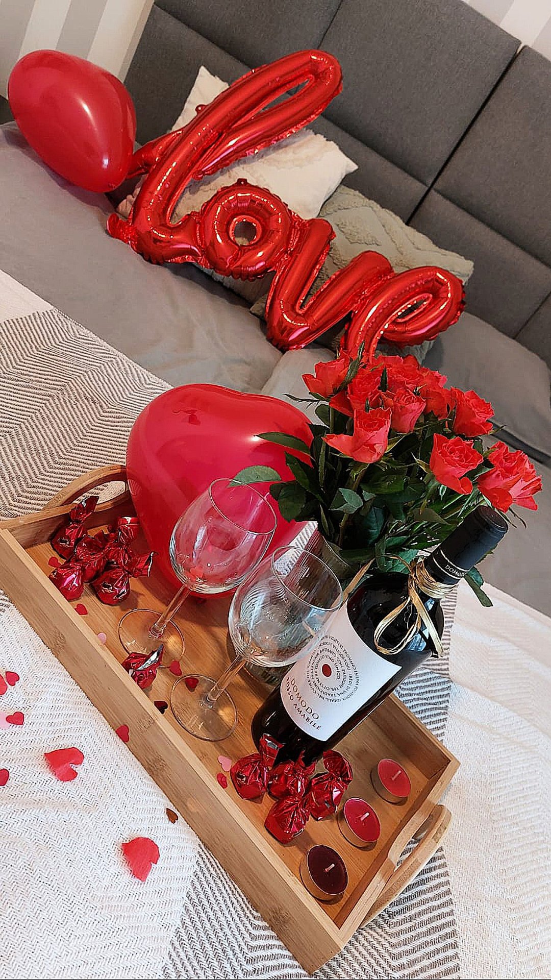 We'll prepare wine or champagne, a special decoration, and a sweet treat.