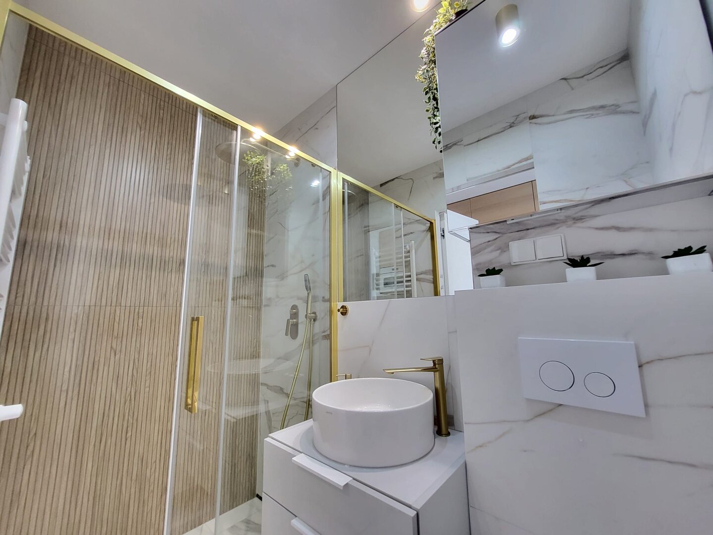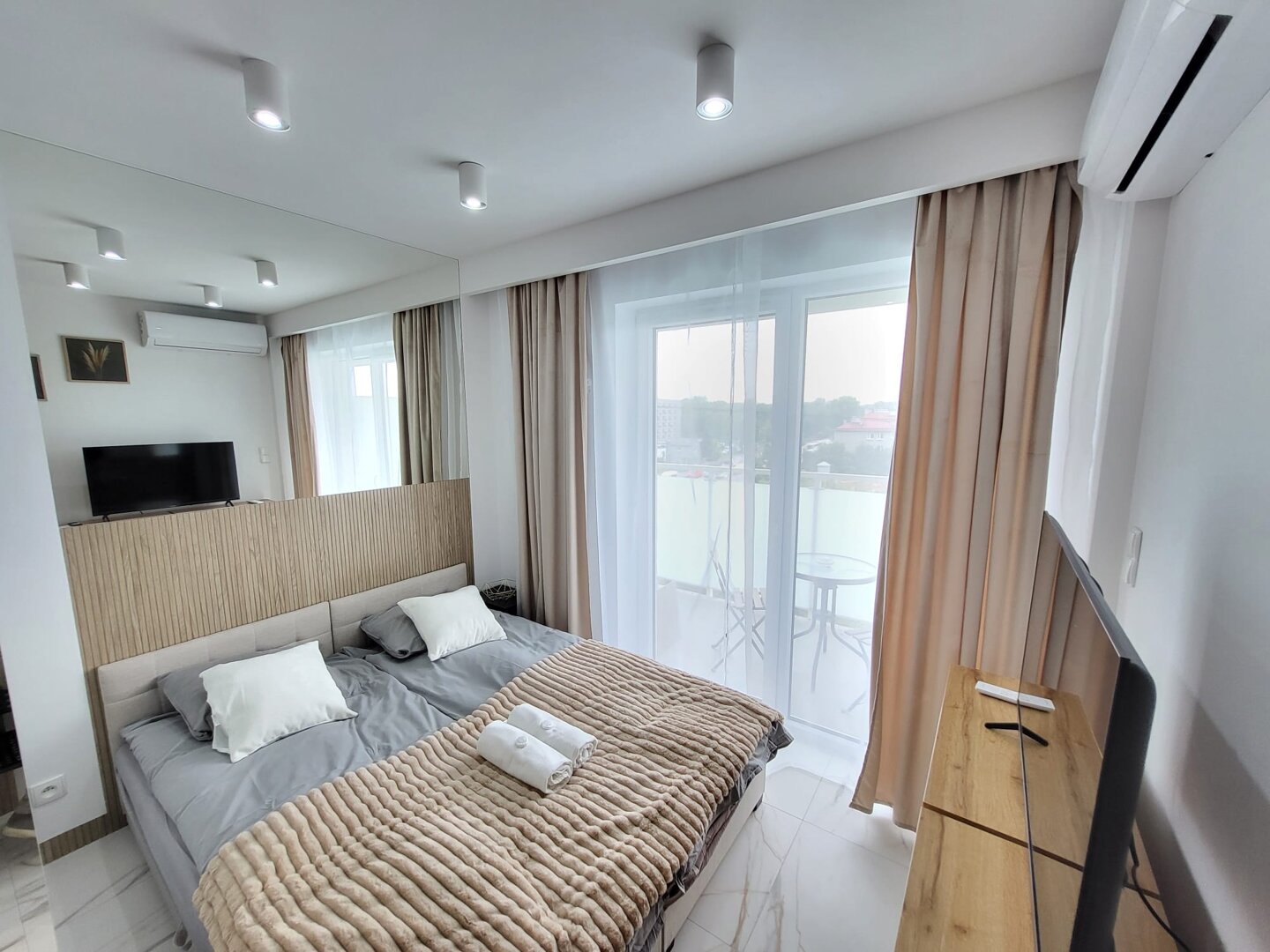 Apartament dwuosobowy z łazienką, aneksem kuchennym I małym balkonem