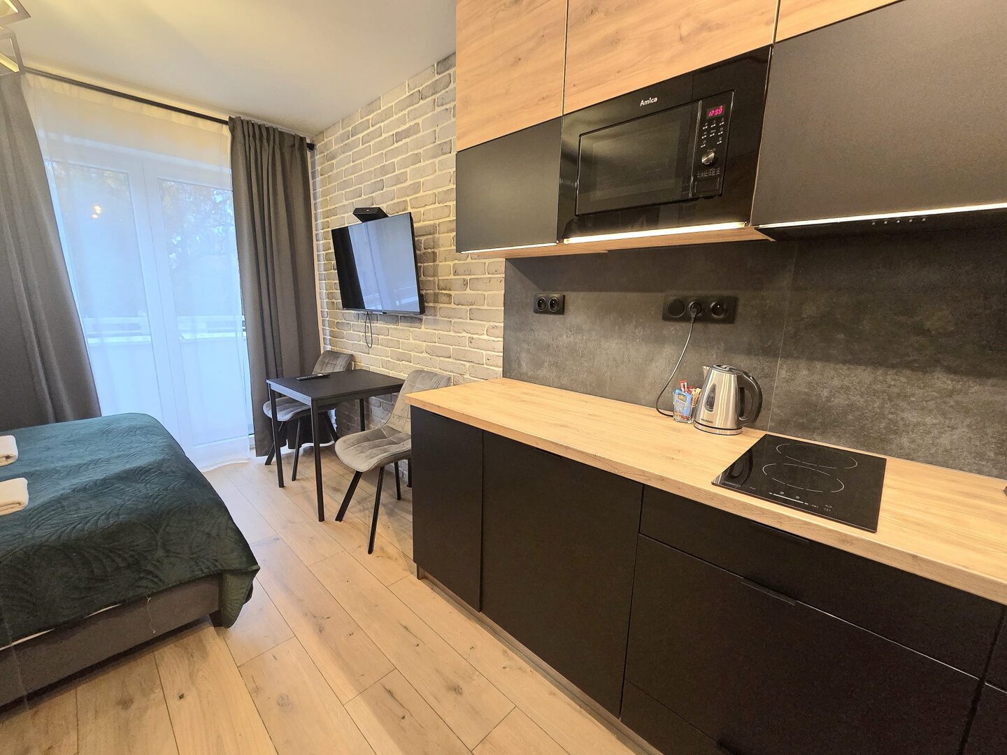 Apartament premium z łazienką, aneksem kuchennym, dużym balkonem i klimatyzacją.