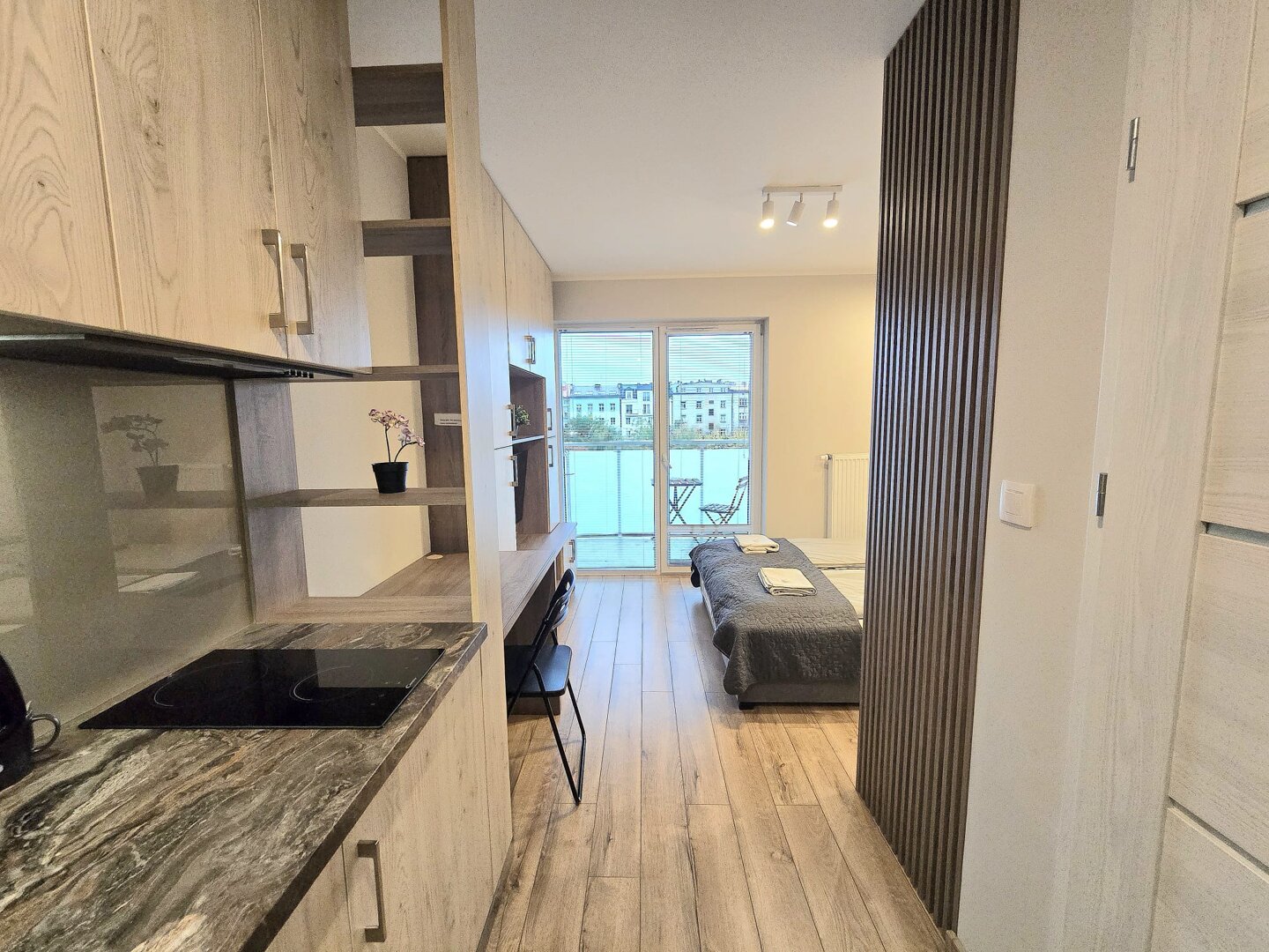 W pełni wyposażony apartament z łazienką, wifi, balkonem i kuchnią.
