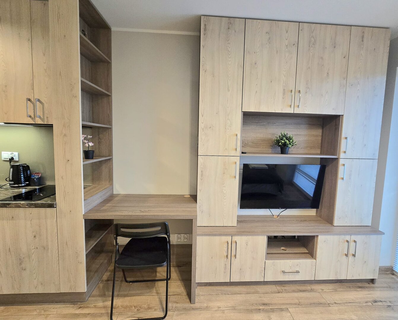 Apartament premium z łazienką, aneksem kuchennym, dużym balkonem i klimatyzacją.