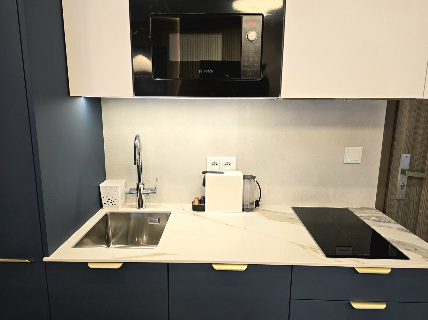Apartament premium z łazienką, aneksem kuchennym, dużym balkonem i klimatyzacją.